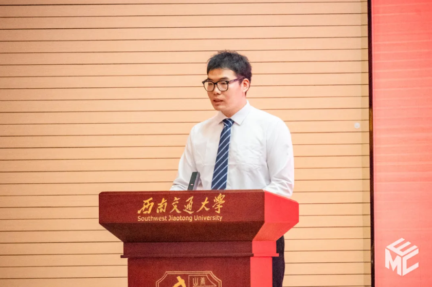 廖凯老师代表学院全体导师,向2025级研究生新生表示热烈的欢迎和衷心的祝贺。他回顾了在交大学习成长工作的经历,作为老师,亦是师兄,他勉励同学们以“努力成为优秀的问题解决者”为核心,要突出需求导向做有价值的科研,注重专注思考提升内在实力,坚持努力奋斗锻造坚强意志,并树立正确的价值观和人生观。最后,他祝愿同学们在研究生生涯中收获成长、碰撞智慧、养成严谨、提升自信,成为出类拔萃的人才。