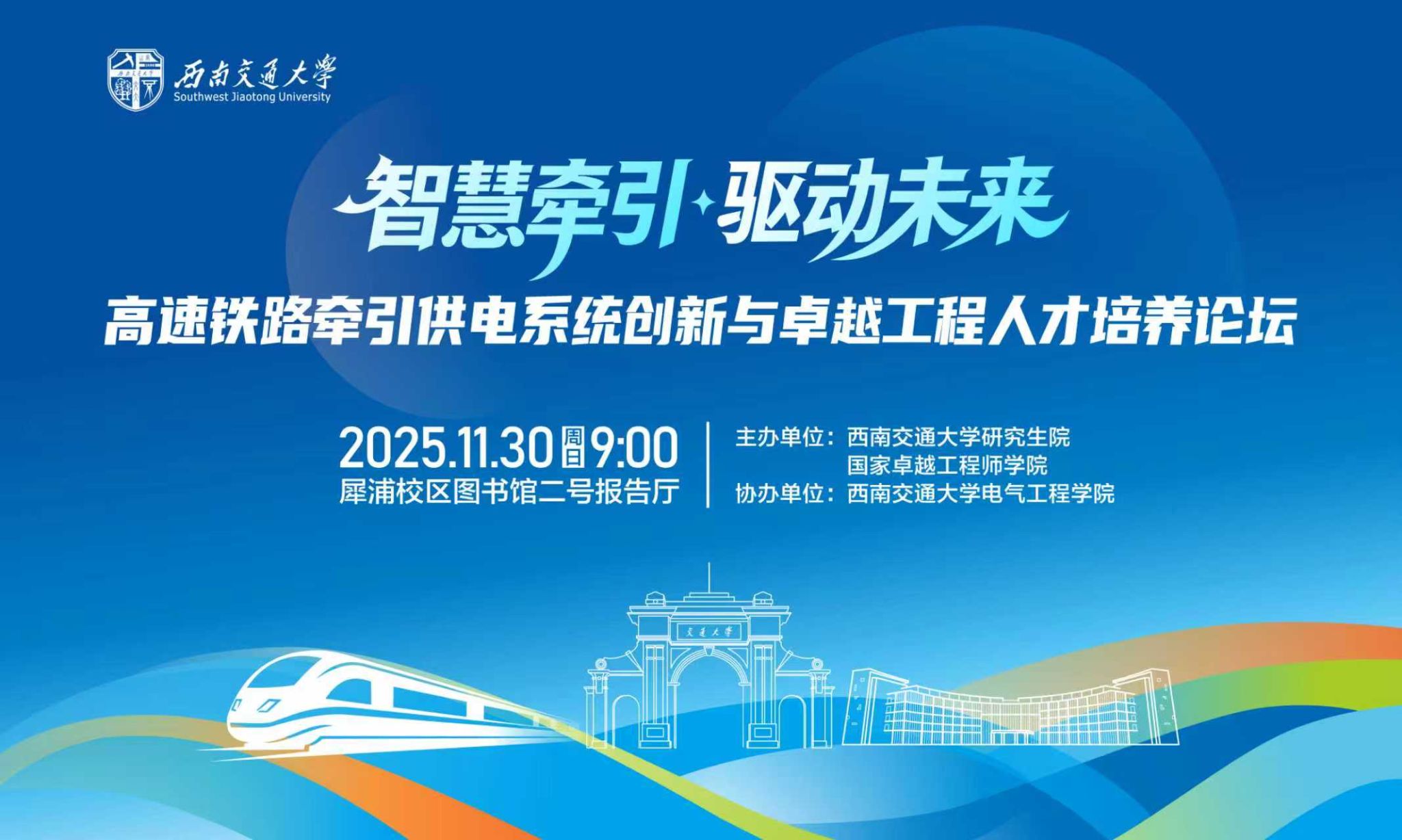 11月30日,由西南交通大学研究生院、国家卓越工程师学院主办,美女直播 承办的“2025年创新领军工程硕博士论坛——智慧牵引·驱动未来:高速铁路牵引供电系统创新与卓越工程人才培养论坛”在犀浦校区图书馆二号报告厅举行 。