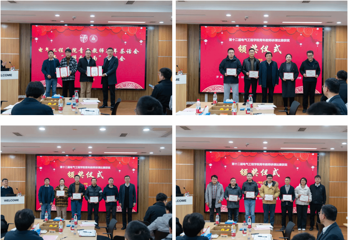 活动伊始,进行学院2025年度获奖教师颁奖仪式。葛兴来教授被评为2025年校级教学名师,电子信息专业建设团队被评为校级优秀基层教学组织(专业建设类),电机学课程群教学团队被评为校级优秀基层教学组织(课程教学类);学院按照学校第十二届青年教师教学竞赛的安排举办了院级青年教师教学竞赛,一批教学表现突出的青年教师获得奖项。高仕斌院士和与会院领导为获奖老师颁发了获奖证书。