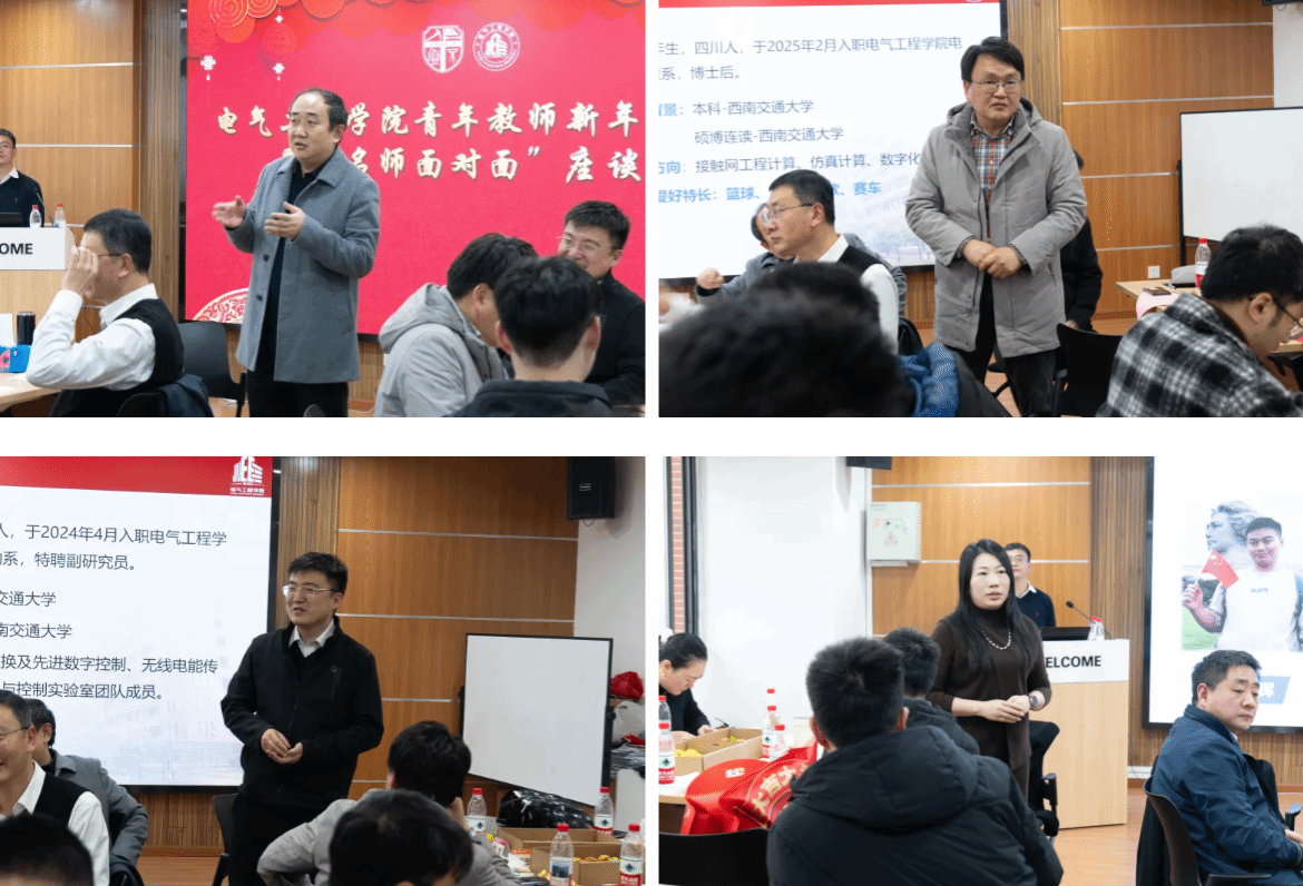2025年12月30日,美女直播 组织举行“2026年青年教师新年茶话会暨‘名师面对面’座谈会”。中国工程院院士高仕斌,学院院长马光同,党委书记王斌,党委副书记邢晓鹏,党委副书记、纪委书记兼副院长燕莆龙,副院长刘志刚、韩莹,副处级组织员魏振兴,学科及人才工作主管杨平与学院60余名青年教师齐聚一堂,共迎新年,畅叙发展。活动由燕莆龙主持。