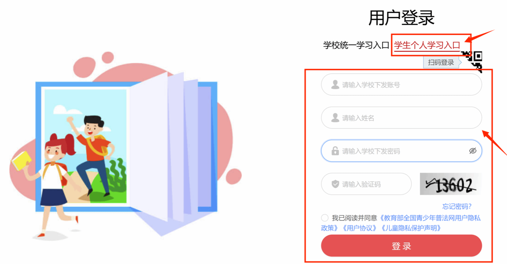 搜索教育部全国⻘少年普法⽹-点击“宪法活动”-点击右上⻆“登录”;或直接点击以下链接登录//qspfw.moe.gov.cn/index.html(各年级用户名及初始密码均已交给年级辅导员,后续将通过相应渠道分发给同学们),通过学生个人学习入口登录,开始学习。